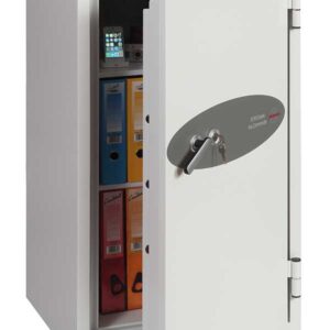 - BRANDSCHUTZ (PAPIER) – Getestet nach der schwedischen Papiernorm NT Fire 017 – 120, bietet 120 Minuten Brandschutz für Papierdokumente.