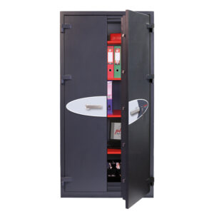- VERSCHLUSS – Ausgestattet mit einem hochsicheren elektronischen Schloss der VdS-Klasse II mit Doppelsteuerung, Mastercode und Code. Zeitverzögerung.