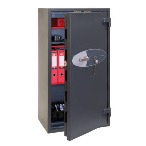 • VERSCHLUSS – Ausgestattet mit einem hochsicheren elektronischen Schloss der VdS-Klasse II mit Doppelsteuerung, Mastercode und Code. Zeitverzögerung.