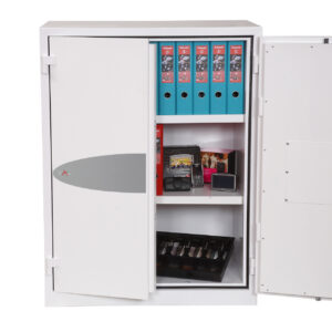 - VERSCHLUSS – Ausgestattet mit einem hochsicheren elektronischen Schloss der VdS-Klasse II mit Doppelsteuerung, Mastercode und Code. Zeitverzögerung.