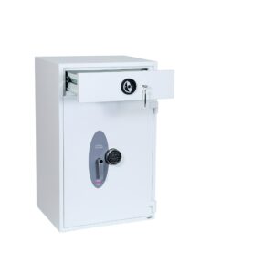 Der PHOENIX CASHIER DAY DEPOSIT SS0992ED SAFE ist ein Frontlader-Tageseinzahlungstresor für die Bargeldverwaltung. Ideal für den Einsatz unter der Theke und ermöglicht die sichere Einzahlung von Bargeld aus einer Kassenschublade.