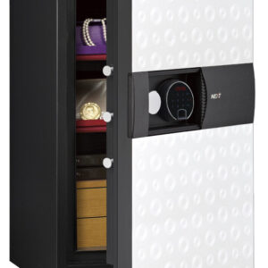 • KONSTRUKTION – 4-Wege verchromte aktive Verriegelungsbolzen mit 32 mm Durchmesser. 140 mm dick. Dreifacher Stahlrahmen mit verstärkten Anti-Bohrplatten, Wiederverriegelungsvorrichtung und eingebautem Alarm schützen den Tresor vor Angriffen.