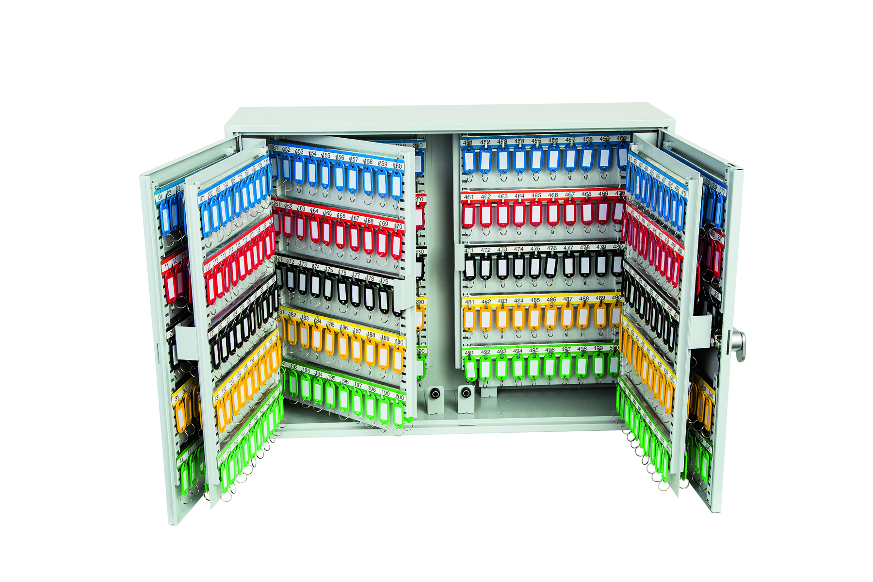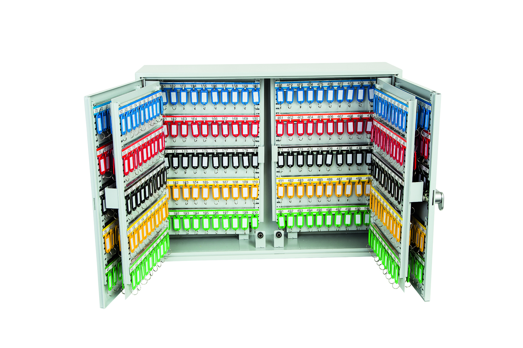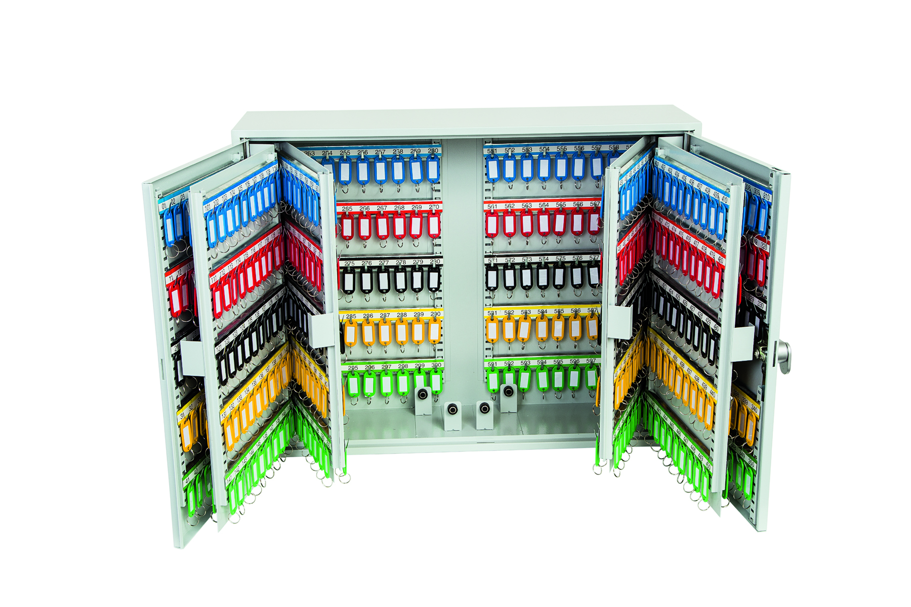 - BESONDERE MERKMALE – Jede Einheit wird mit verstellbaren Hakenstangen und passenden Nummernschildern geliefert. Bei der Einheit KC0607E handelt es sich um einen Doppeltürschrank.