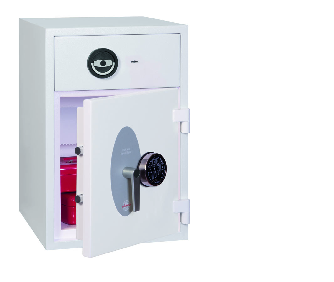 Der PHOENIX DIAMOND DEPOSIT ist für die sichere Einzahlung großer Bargeldbeträge konzipiert, ohne die übliche Einschränkung des Sicherheitsschutzes, die normalerweise mit Einzahlungstresoren verbunden ist. Ideal für Einzelhandelsgeschäfte, Garagenplätze, Banken und Finanzinstitute.
