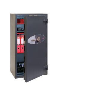- VERSCHLUSS – Ausgestattet mit einem hochsicheren elektronischen Schloss der VdS-Klasse II mit Doppelsteuerung, Mastercode und Code. Zeitverzögerung.