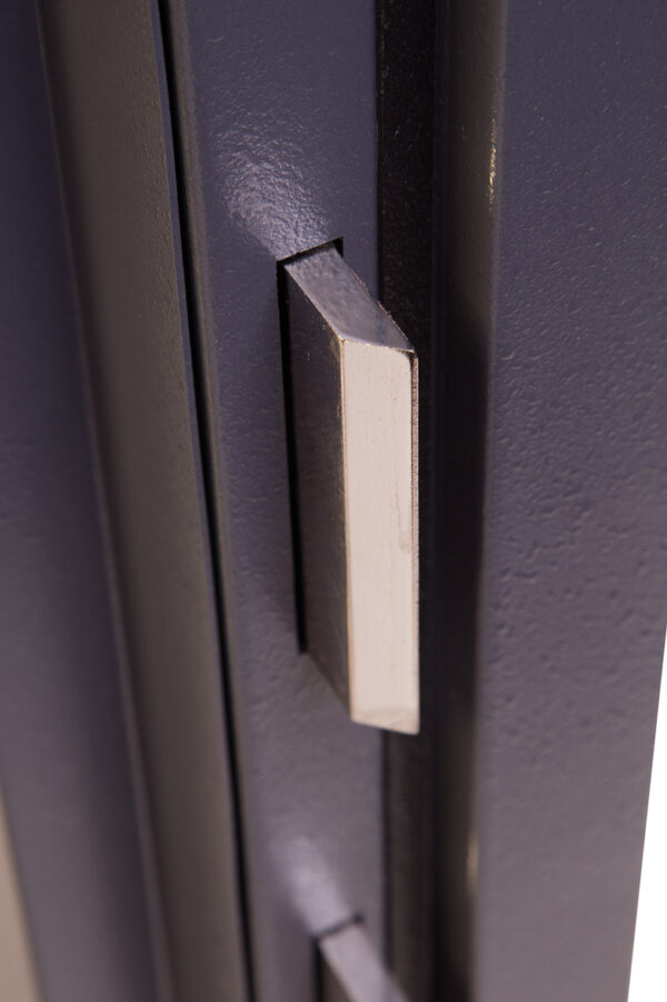 Konstruktion | 3-Wege-Verriegelungsbolzen mit 24 mm Durchmesser, Anti-Bohrplatten und Wiederverriegelungsschutz sorgen für einen Tresor mit großer Stabilität., doppelwandige Konstruktion mit speziell formulierter Betonfüllung |