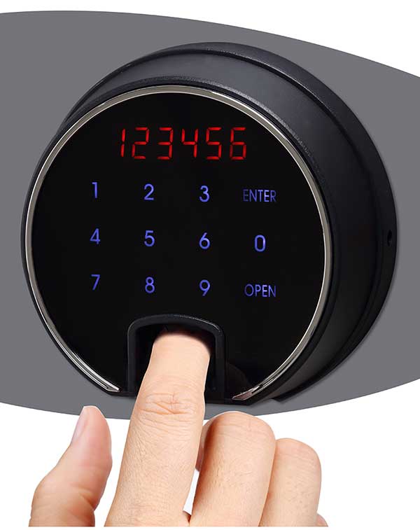 - VERRIEGELUNG – Ausgestattet mit einer fortschrittlichen Hochsicherheits-Touchscreen-Tastatur und -Funktion. Fingerabdruckschloss mit klarer LED-Anzeige, internem Alarm, Doppelsteuerung, verstecktem Code und verschlüsseltem Code, der standardmäßig mit bis zu 128 Fingerabdrücken programmiert werden kann.