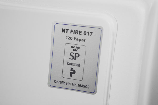 - BRANDSCHUTZ (PAPIER) – Getestet nach schwedischem Papier NT Fire 017 – 120. Bietet 120 Minuten Brandschutz für Papierdokumente.