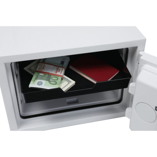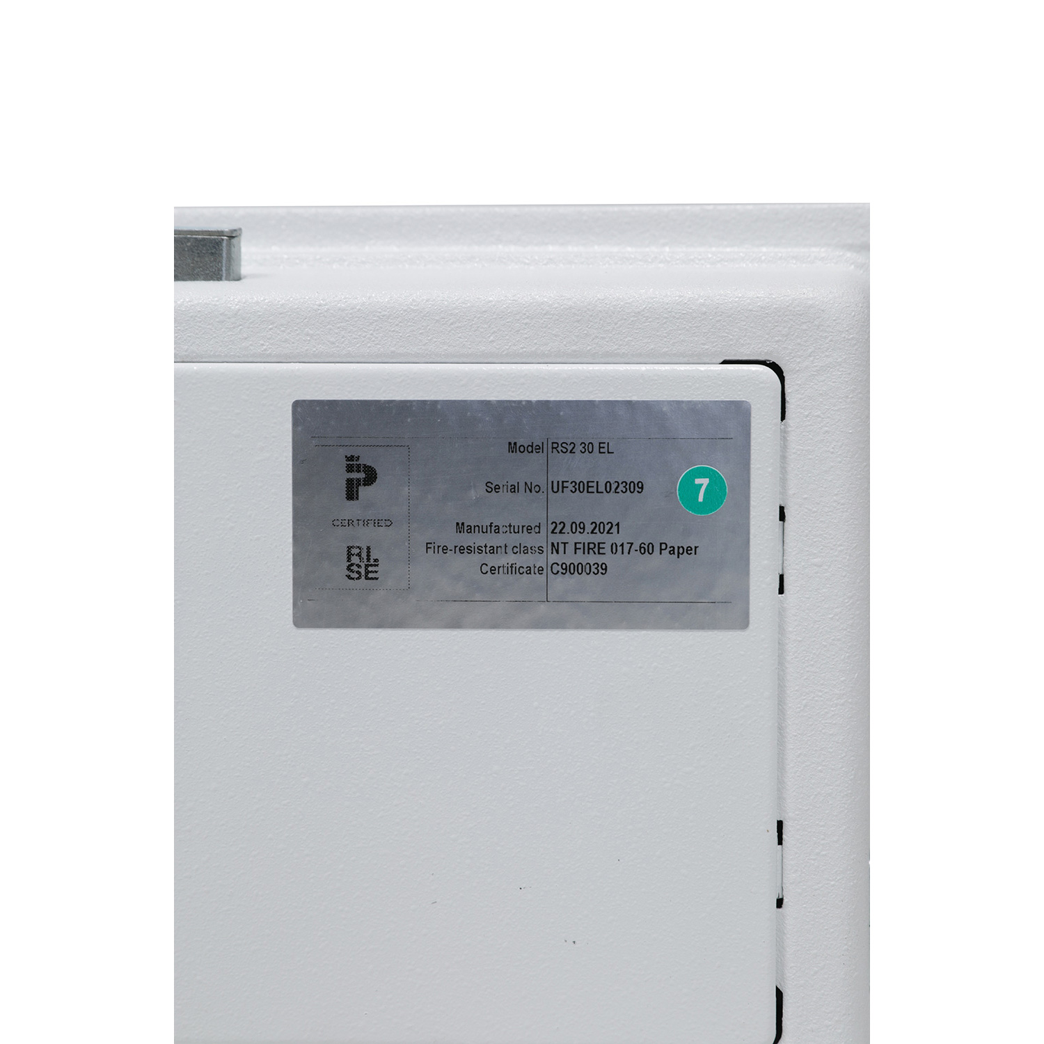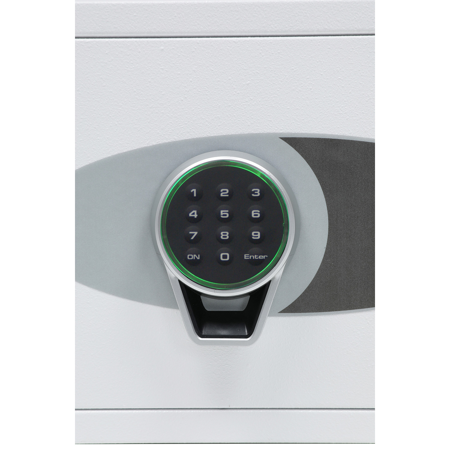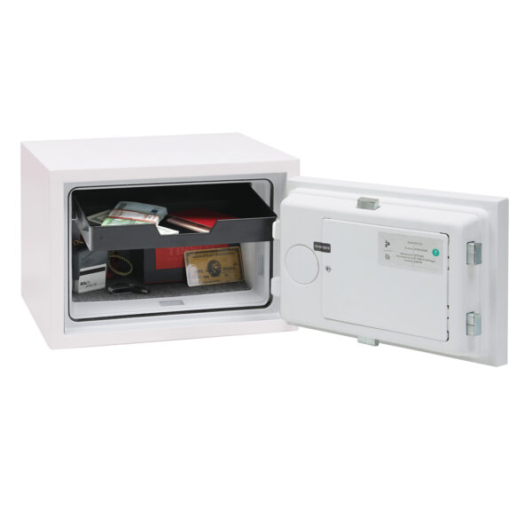 - BRANDSCHUTZ – Getestet nach der internationalen Brandtestnorm NT Fire 017-60, die 60 Minuten Brandschutz für Papierdokumente bietet.