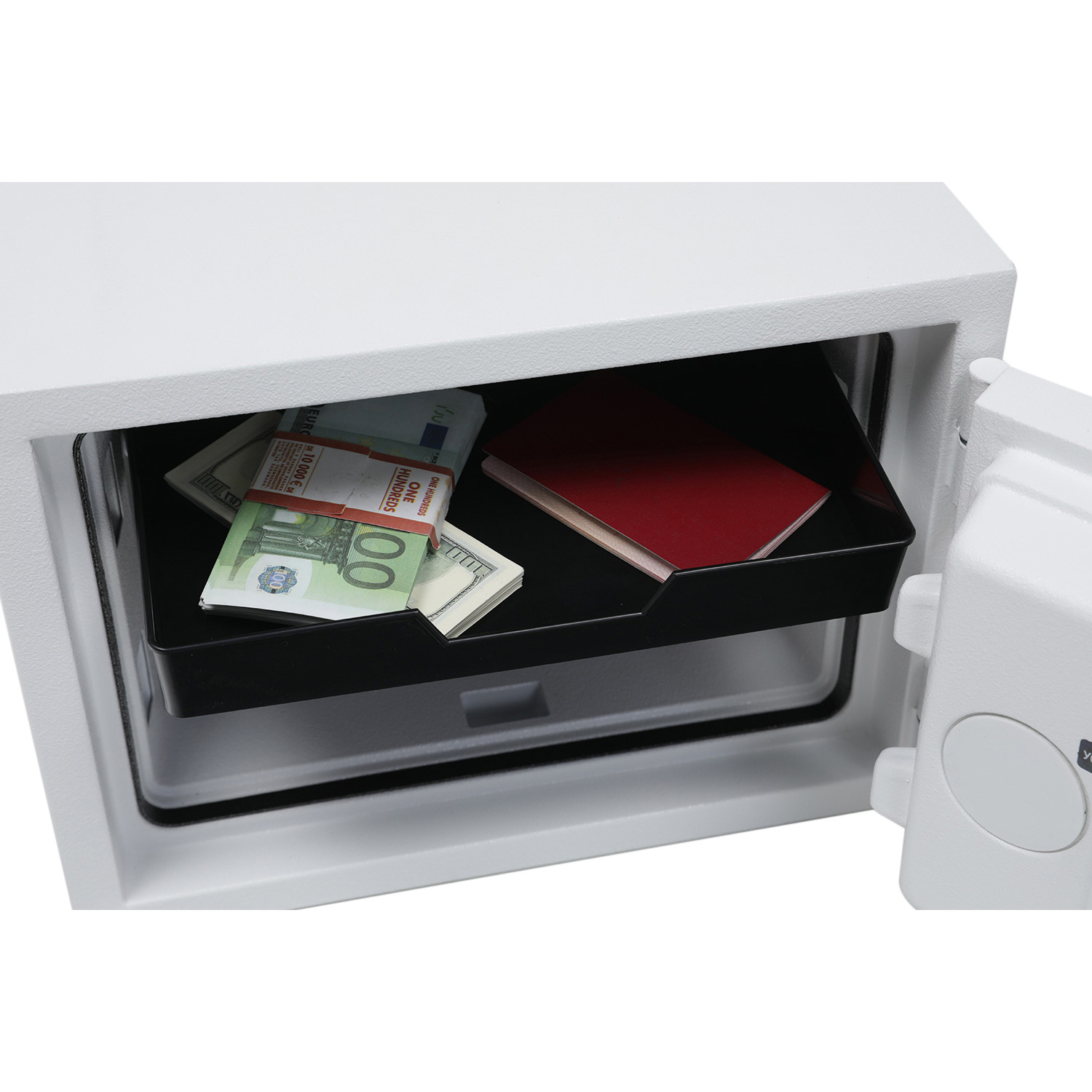 - KONSTRUKTION – Doppelwandkonstruktion mit Anti-Bohrplatten und Wiederverriegelungsschutz für die Tür sorgen für einen Tresor von großer Stabilität.