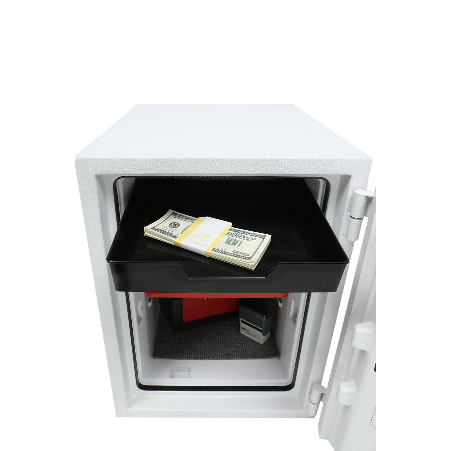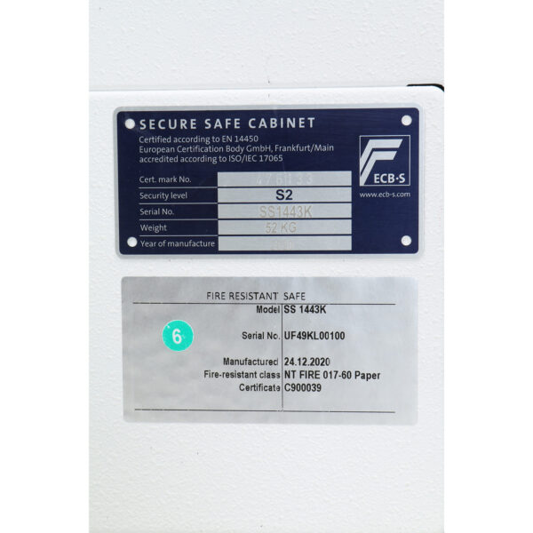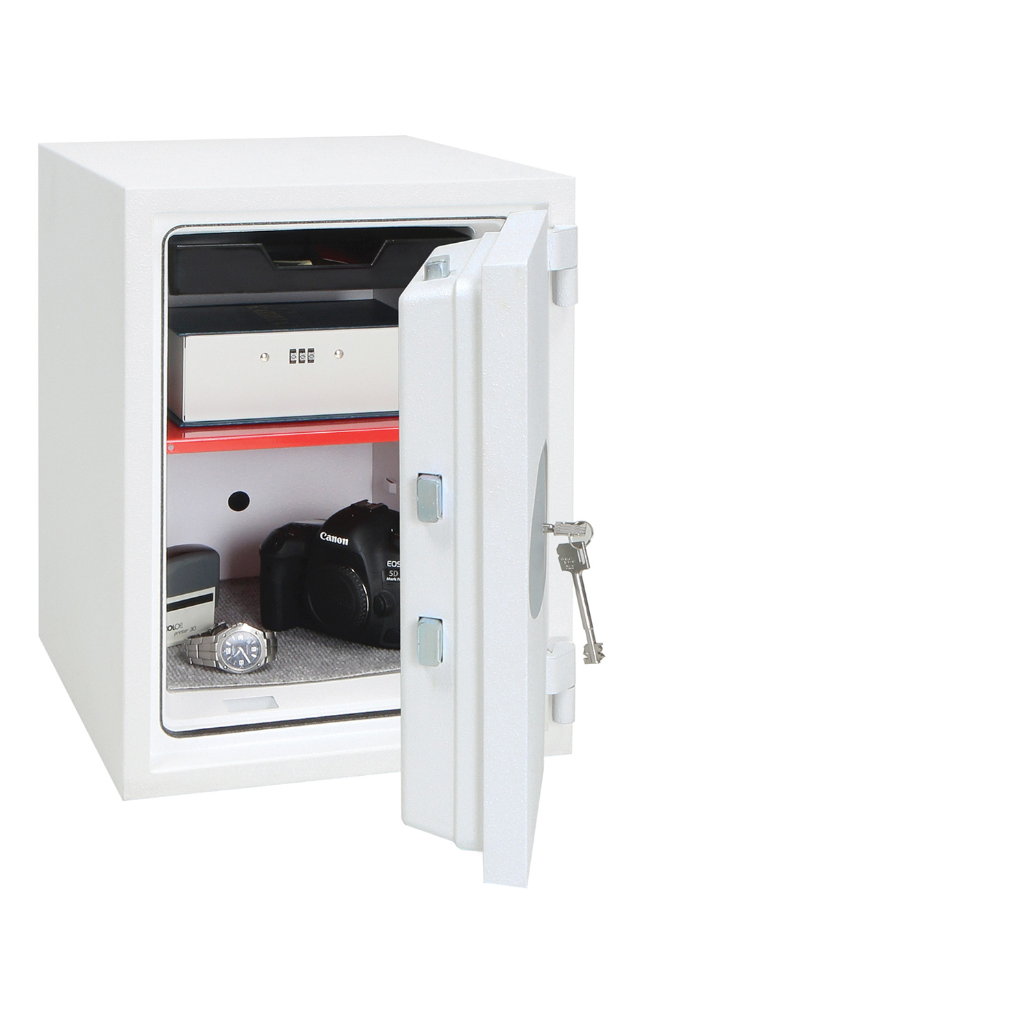 - BRANDSCHUTZ – Getestet nach der internationalen Brandtestnorm NT Fire 017-60, die 60 Minuten Brandschutz für Papierdokumente bietet.