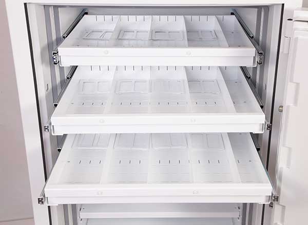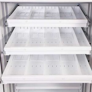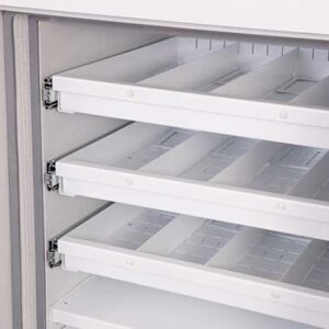 - Ausstattung – Jede Einheit wird komplett mit höhenverstellbaren Regalen und ausziehbaren Medienfächern geliefert.