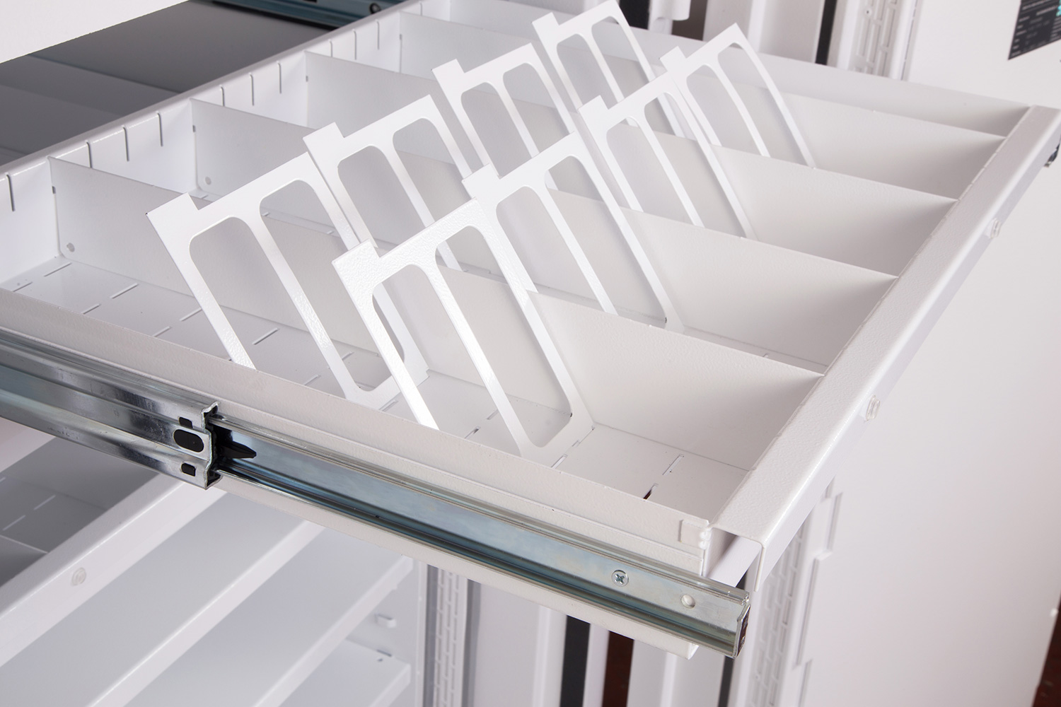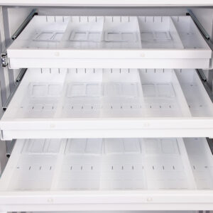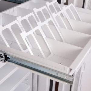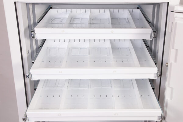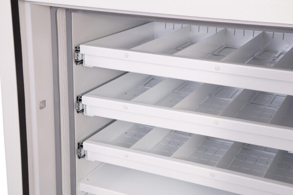 - Ausstattung – Jede Einheit wird komplett mit höhenverstellbaren Regalen und ausziehbaren Medienfächern geliefert.