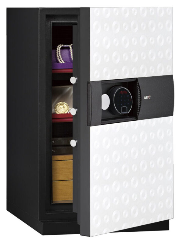 - Ausstattung – Jeder Next-Safe verfügt über luxuriöse Holzschubladen mit vollständig ausgekleidetem Boden zum Schutz Ihrer Wertsachen. Weitere Schubladen je nach Bedarf auf Anfrage lieferbar.