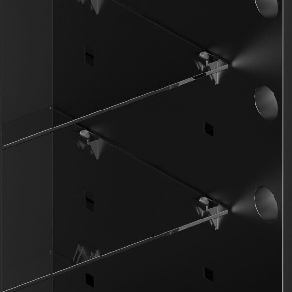 - AUSSTATTUNG – Ausgestattet mit luxuriösen Schubladen mit ausziehbaren Gleitschienen. Im Lieferumfang sind zwei 5 mm dicke, höhenverstellbare Einlegeböden aus gehärtetem Glas enthalten.