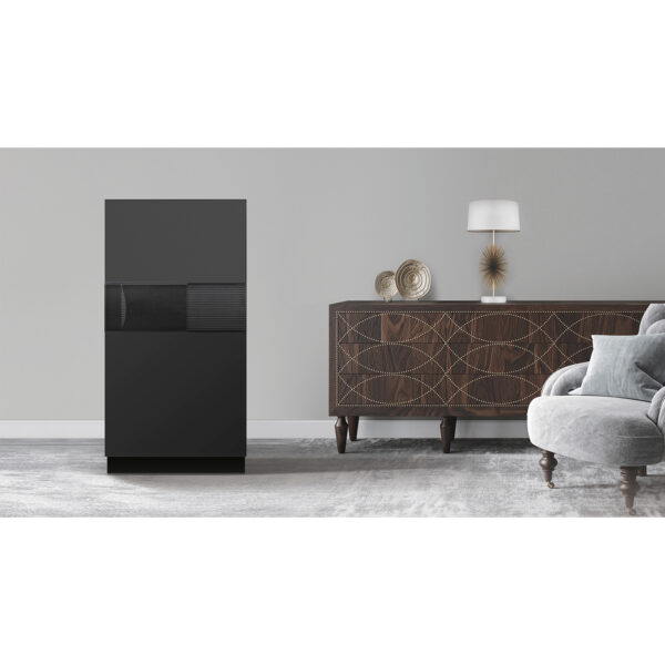 - FARBE/FINISH – Stilvolle Türverkleidungen in Anthrazitgrau erhältlich. Gehäuse in hochglänzendem Schwarz gehalten.