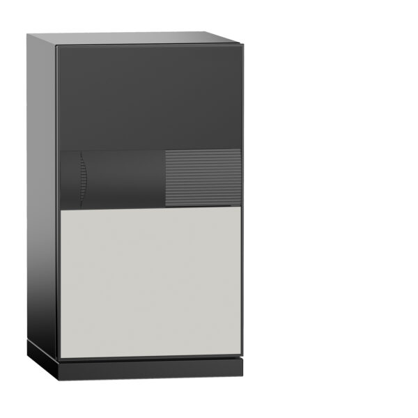 - FARBE/FINISH – Stilvolle Türverkleidungen, erhältlich in Dunkelgrau und Creme. Gehäuse in hochglänzendem Schwarz gehalten.