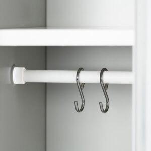 - INNENAUSSTATTUNG – Lieferung mit festem Regal, Kleiderstange und Kleiderhaken. Kann Mäntel und Overalls auf handelsüblichen Kleiderbügeln unterbringen.