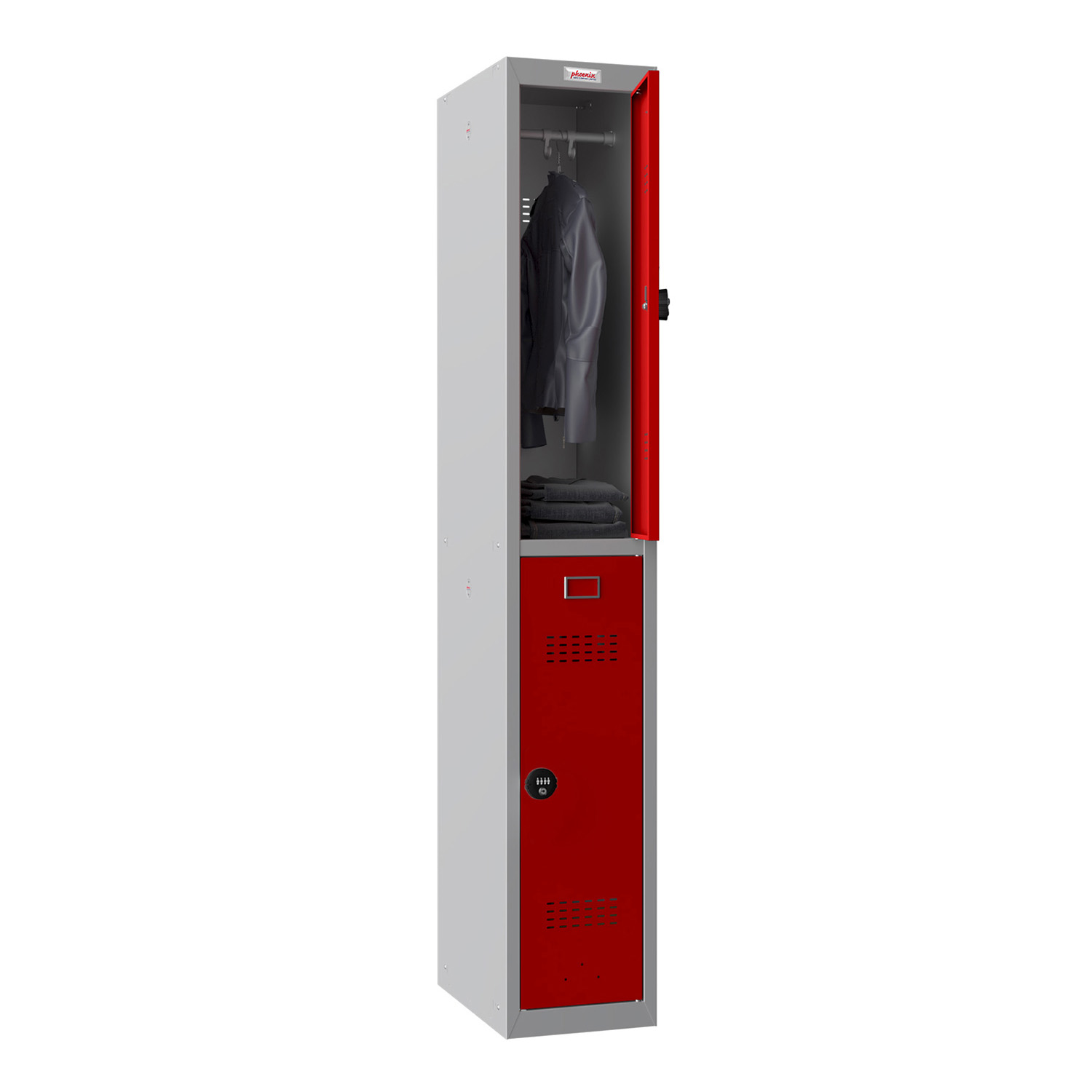Phoenix PL Series PL1230GRC 1-Spaltiger 2-türiger Personalschrank grauer Körper/rote Türen mit Zahlenschlössern