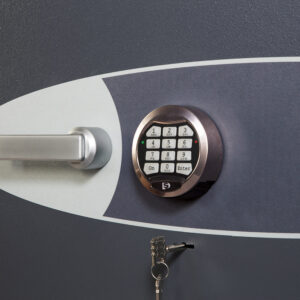 - VERSCHLUSS – Ausgestattet mit einem hochsicheren elektronischen Schloss der VdS-Klasse II mit Doppelsteuerung, Mastercode und Code. Zeitverzögertes Hochsicherheits-Doppelbartschloss der VdS-Klasse II.