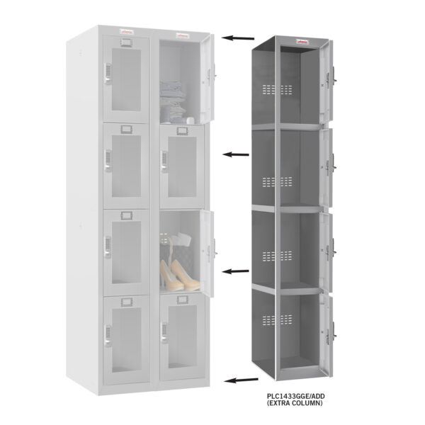 Phoenix PLC Series PLC1433GGE/ADD 1-spaltiger 4-türiger Klar-Personalschrank in Grau mit Elektronikschloss