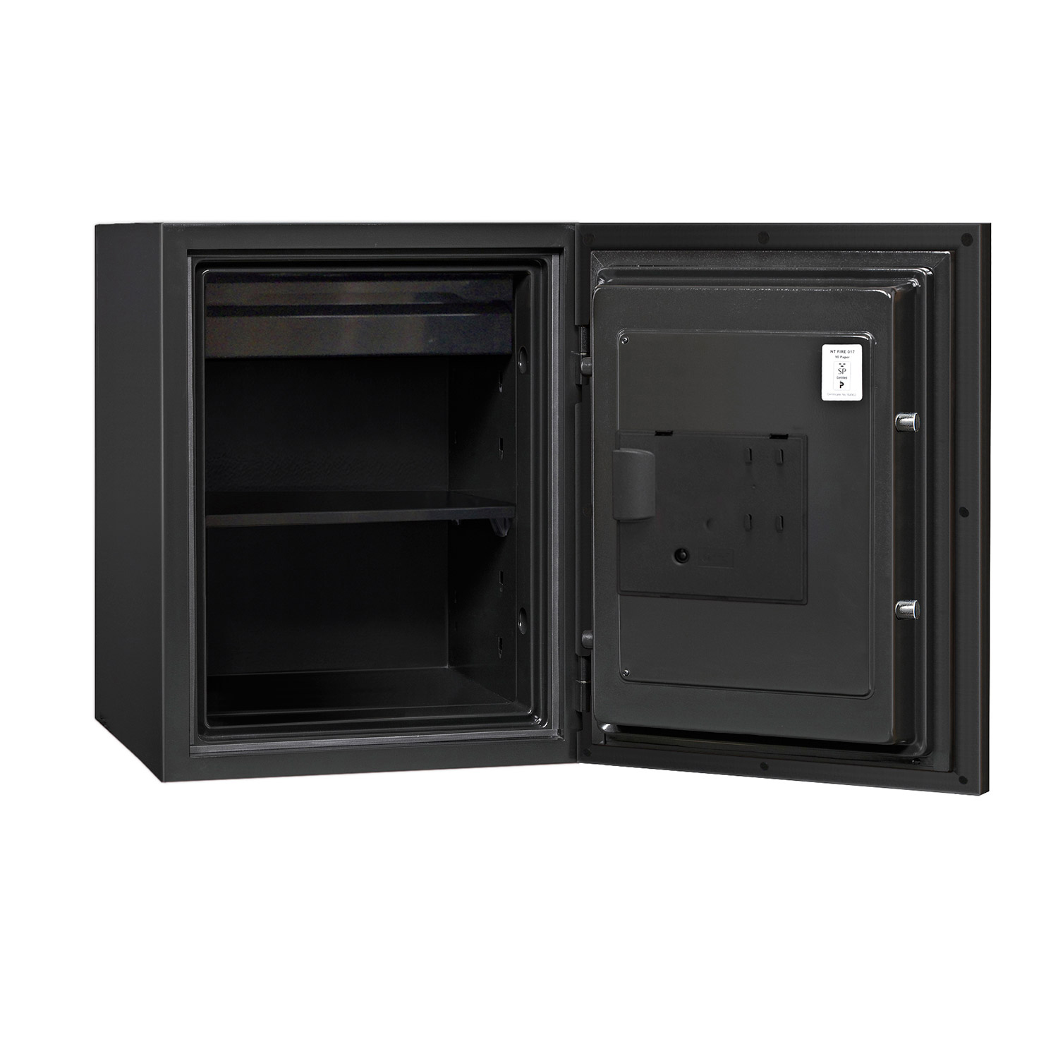 - BRANDSCHUTZ (PAPIER) – Getestet nach der internationalen Brandtestnorm NT Fire 017 – 90 im schwedischen SP-Testzentrum, das 90 Minuten Brandschutz für Papierdokumente bietet.