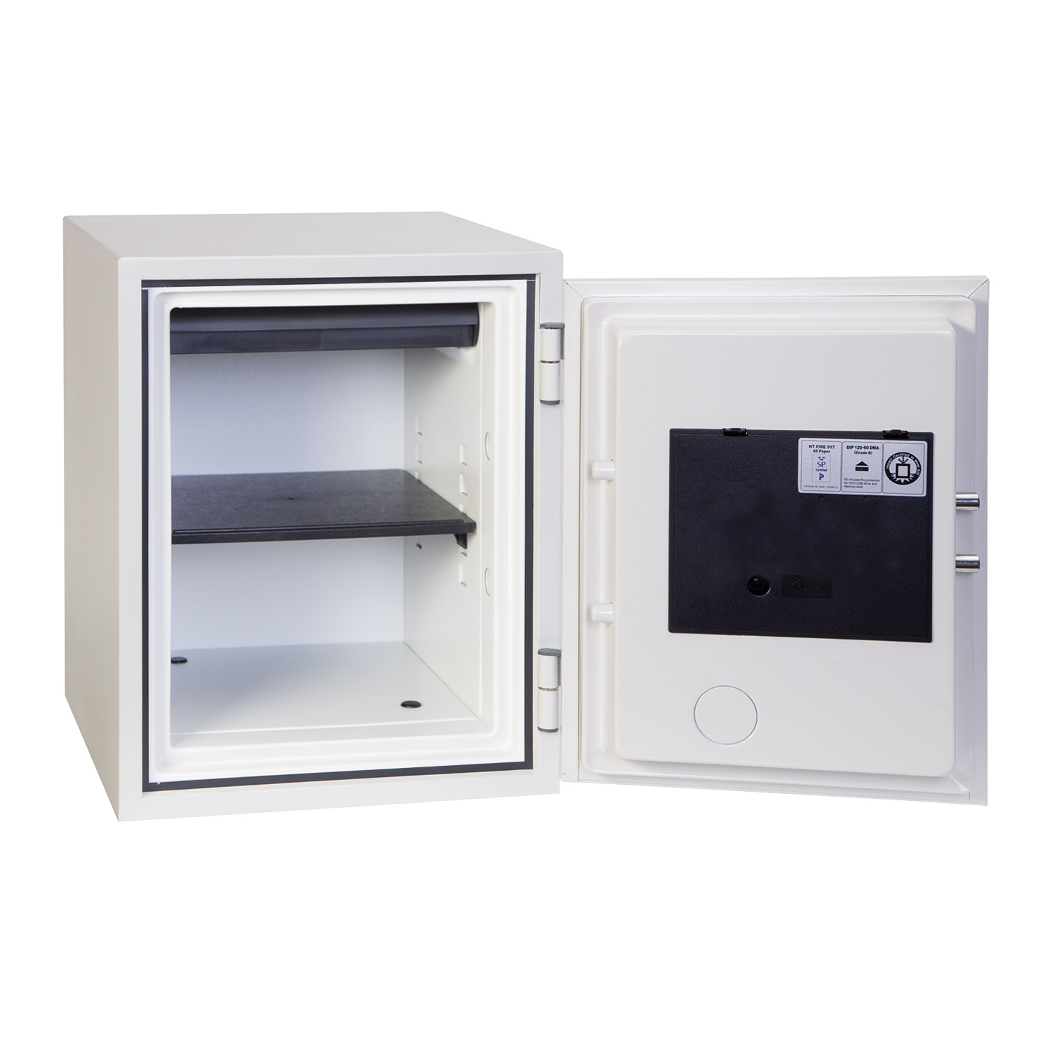 - BRANDSCHUTZ (PAPIER) – Getestet nach der internationalen Brandtestnorm NT Fire 017 – 60 im schwedischen SP-Testzentrum, das 60 Minuten Brandschutz für Papierdokumente bietet.