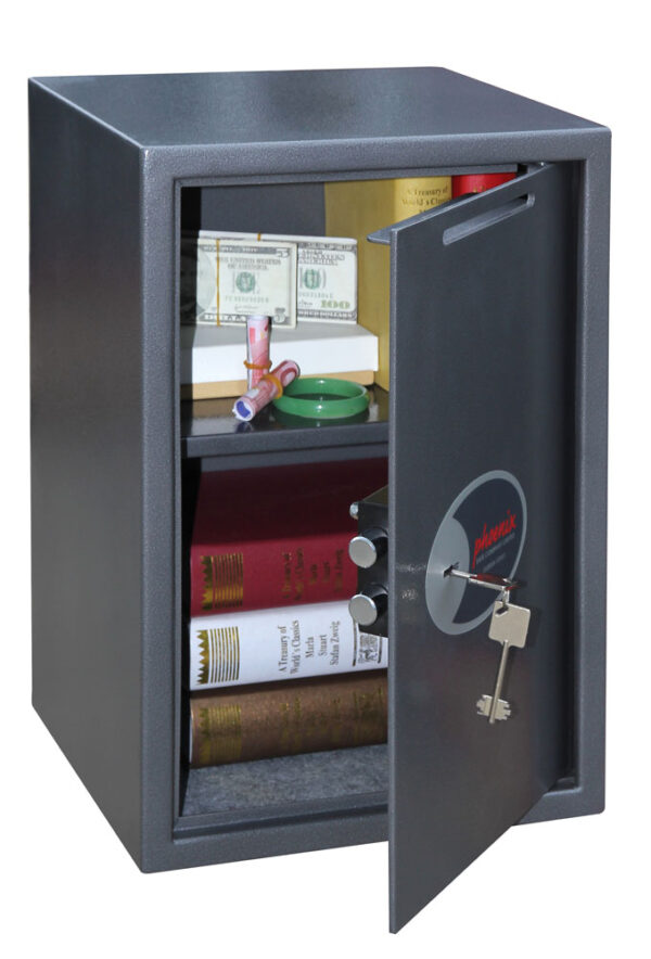 THE PHOENIX VELA DEPOSIT ist für den Einsatz zu Hause oder im Büro zur Aufbewahrung von Wertsachen, Bargeld und wichtigen Dokumenten konzipiert. Mit seinem hochwertigen Schlüsselschloss ist es ideal für mehrere Anwendungen.