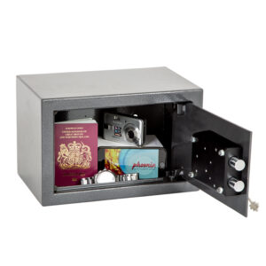 THE PHOENIX VELA ist für den Einsatz zu Hause oder im Büro zur Aufbewahrung von Wertsachen, Bargeld und wichtigen Dokumenten konzipiert. Mit seinem hochwertigen Schlüsselschloss ist es ideal für mehrere Anwendungen.