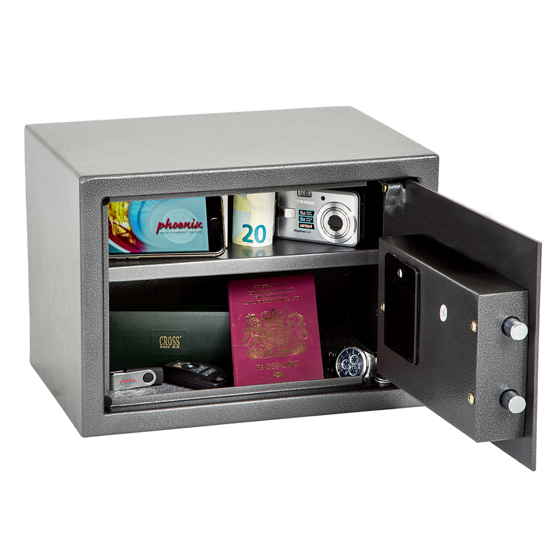 THE PHOENIX VELA ist für den Einsatz zu Hause oder im Büro zur Aufbewahrung von Wertsachen, Bargeld und wichtigen Dokumenten konzipiert. Mit seinem hochwertigen, benutzerfreundlichen elektronischen Schloss ist es ideal für vielfältige Anwendungen.