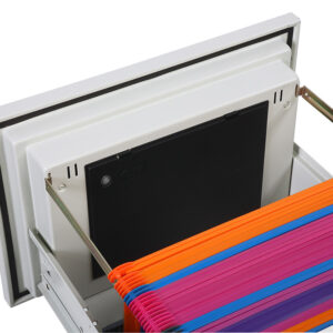 - KAPAZITÄT – Bietet Platz für Foolscap-, A4- und A5-Ordner auf breitenverstellbaren Schienen. Zur Maximierung des nutzbaren Raums werden auch Kompressionsplatten mitgeliefert.